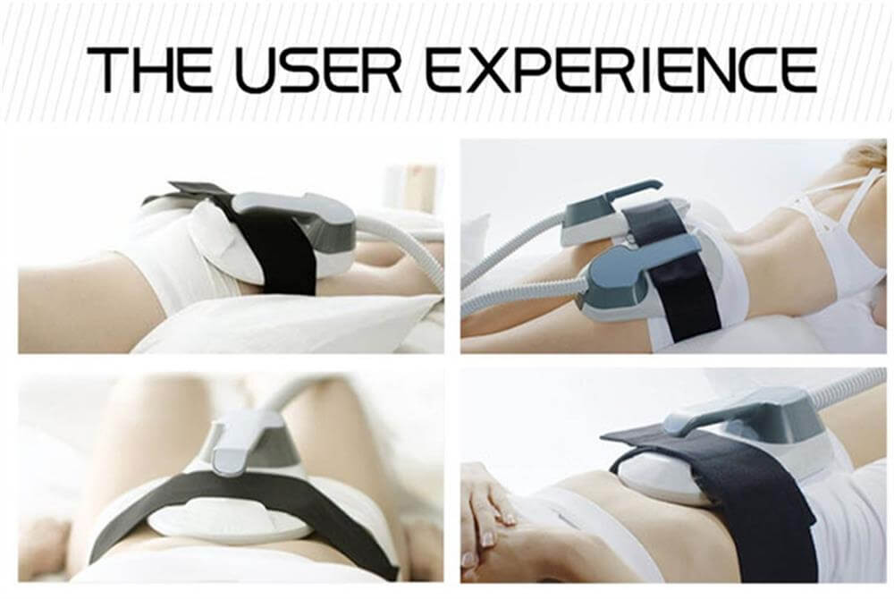 Two applicators are placed on the target muscle area, such as your abs, thighs, or buttocks. The applicators then generate intense electromagnetic that causes involuntary muscle contractions. These contractions trigger the release of free fatty acids, which break down fat deposits and increase muscle tone and strength.