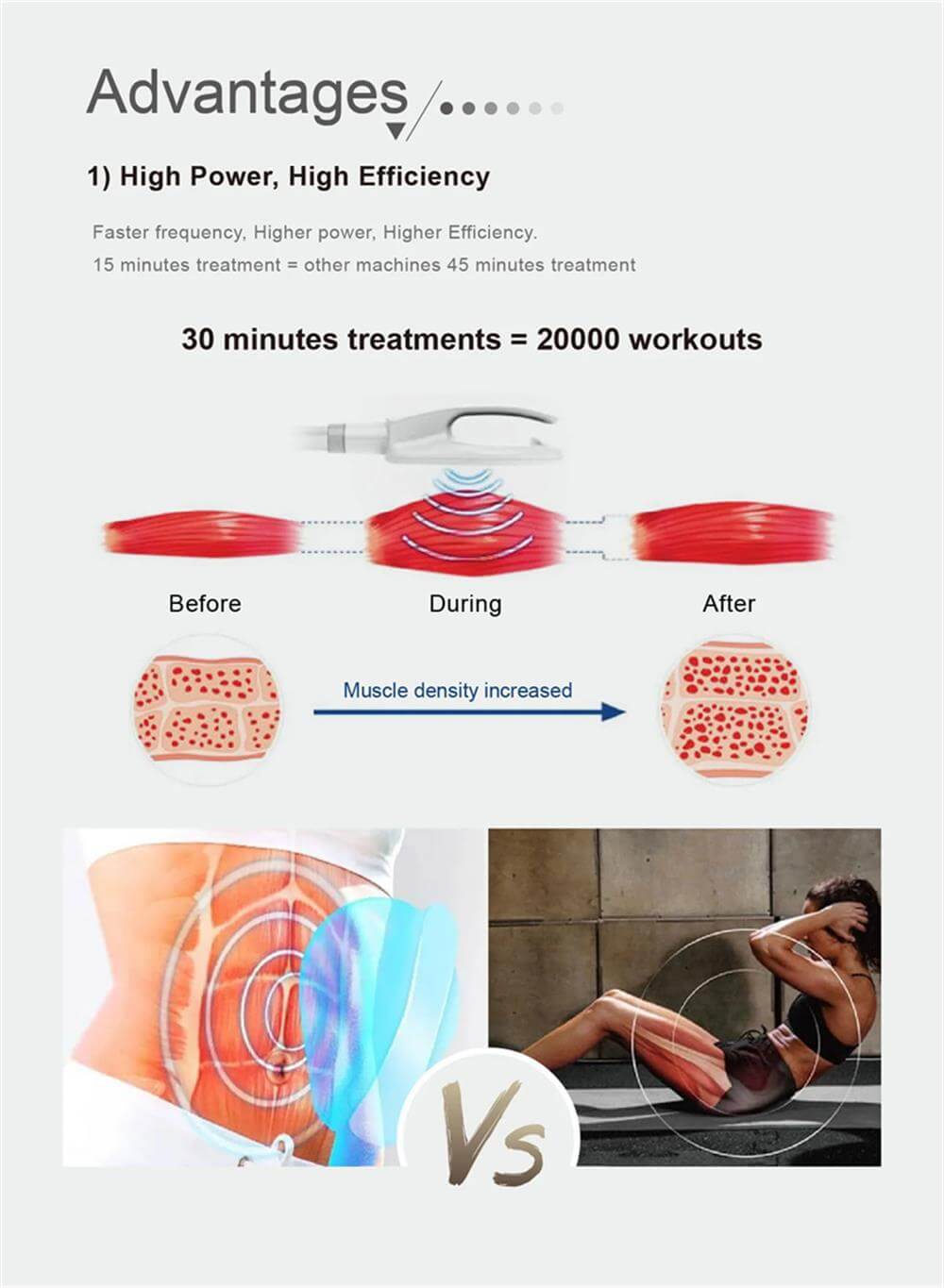 With regular use, the EMS Sculpting Machine can enhance muscle strength, increase endurance, and improve overall body composition. It's perfect for busy individuals who want to maximize their workout time or those seeking an extra boost to their fitness routine.